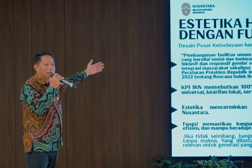 NUSANTARA | brigadepasopati.com — Upaya menghadirkan Ibu Kota yang tidak hanya fungsional namun juga hidup secara budaya kembali ditegaskan Otorita Ibu Kota Nusantara (IKN) melalui penyelenggaraan Aanwijzing Sayembara Desain Bangunan dan Kawasan Pusat Kebudayaan IKN di Kantor Kemenko 3, Kawasan Inti Pusat Pemerintahan (KIPP) IKN, pada Jum’at (21/11/2025). Agenda ini menjadi langkah penting dalam menyelaraskan pemahaman para peserta dengan visi besar pembangunan Pusat Kebudayaan sebagai ruang yang menampung, merayakan, sekaligus mengembangkan identitas bangsa.