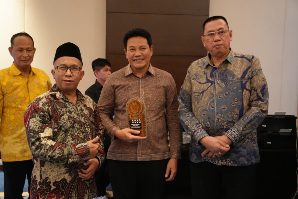 Menteri Desa dan Pembangunan Daerah Tertinggal (Mendes PDT), Yandri Susanto, menyerahkan penghargaan kategori Kabupaten Terfavorit submit film pendek Jaga Desa Award 2026 kepada Bupati Sidoarjo H. Subandi yang hadir bersama Kepala Kejaksaan Negeri Sidoarjo, Zaidar Rasepta.