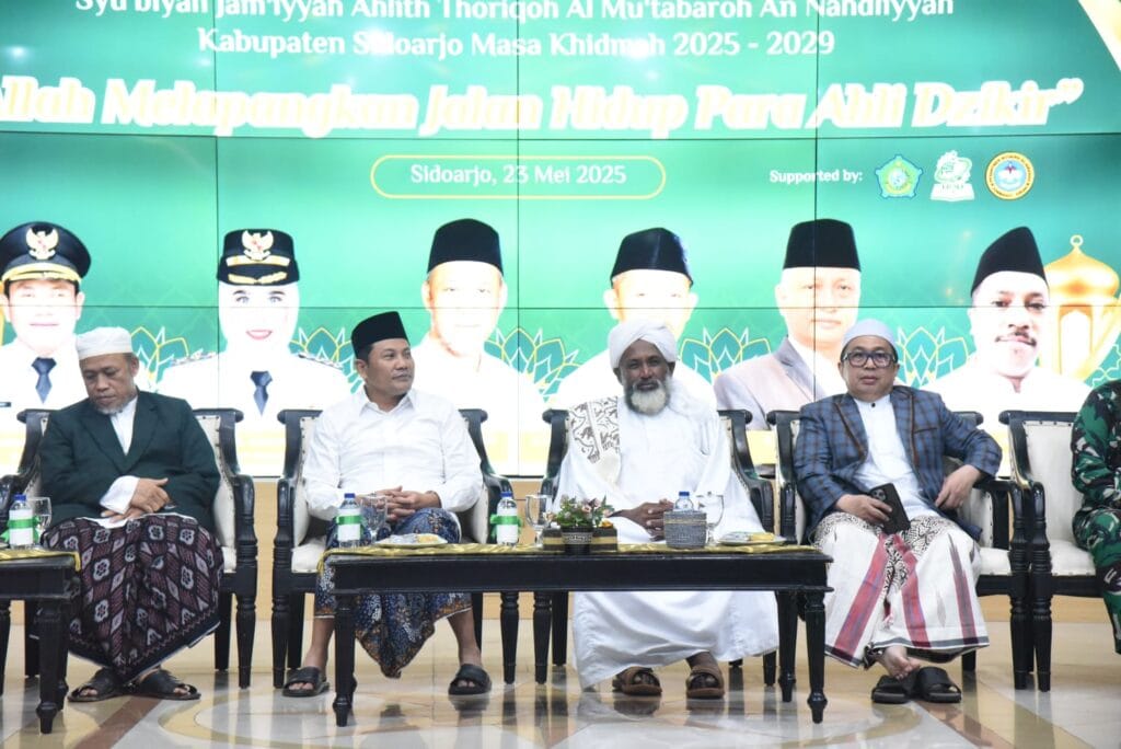 SIDOARJO | brigadepasopati.com – Sejumlah Kyai dan Ustadz hadir pada kegiatan Silaturahim Ulama Umaroh di Pendopo Delta Wibawa, pada Jum’at malam, (23/5/2025). Kegiatan yang dibarengi dengan taaruf syu’biyah atau perkenalan pengurus Jam’iyyah Ahlith Thoriqoh Al Mu’tabaroh An Nahdliyah/Jatman Kabupaten Sidoarjo masa khidmah 2025-2029 tersebut dihadiri Forkopimda Sidoarjo. Diantaranya Bupati Sidoarjo H. Subandi, Kapolresta Sidoarjo Kombespol Christian Tobing serta Dandim 0816 Sidoarjo Letkol Inf Dedyk Wahyu Widodo. Dan dalam kesempatan itu juga diundang Ulama besar dari Sudan Syech Awad Aqli.