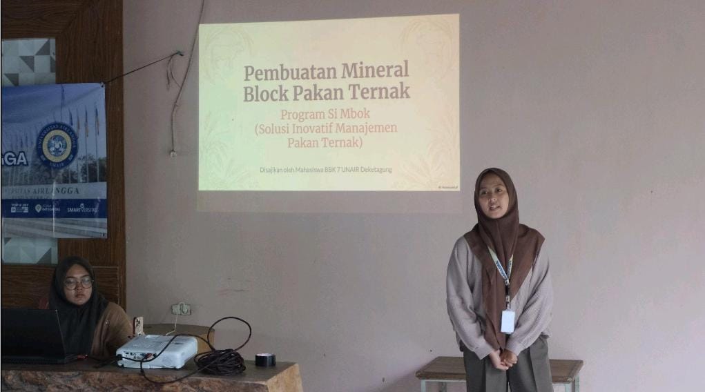 “Berdasarkan hasil observasi lapangan dan diskusi langsung dengan warga, diketahui bahwa sebagian besar peternak belum memahami peran mineral sebagai unsur penting yang bekerja layaknya vitamin dan suplemen bagi ternak, sehingga kekurangan mineral kerap dianggap sebagai kondisi yang wajar,” ujar salah satu perwakilan tim Mahasiswa BBK 7 UNAIR. Padahal, defisiensi mineral dapat berdampak pada menurunnya daya tahan tubuh ternak, terganggunya metabolisme, rendahnya nafsu makan, serta tidak optimalnya pemanfaatan pakan yang diberikan, baik pada kambing maupun sapi.