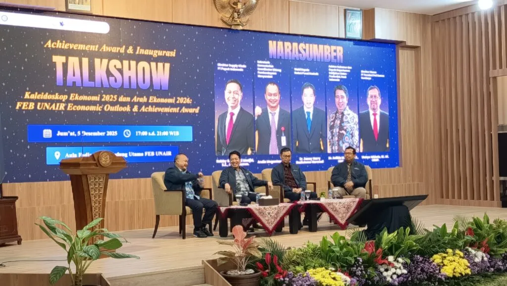 SURABAYA | brigadepasopati.com – Fakultas Ekonomi dan Bisnis (FEB) Universitas Airlangga (UNAIR) sukses menyelenggarakan acara Talkshow dan Inagurasi Apresiasi Mahasiswa Berprestasi Tahun 2025 yang bertajuk “Kaleidoskop Ekonomi 2025 dan Arah Ekonomi 2026: FEB UNAIR Economic Outlook & Achievement Award”. Acara bergengsi ini diadakan di Aula Fadjar Notonegoro, Kampus B Universitas Airlangga, Surabaya, Jum’at (5/12/2025).