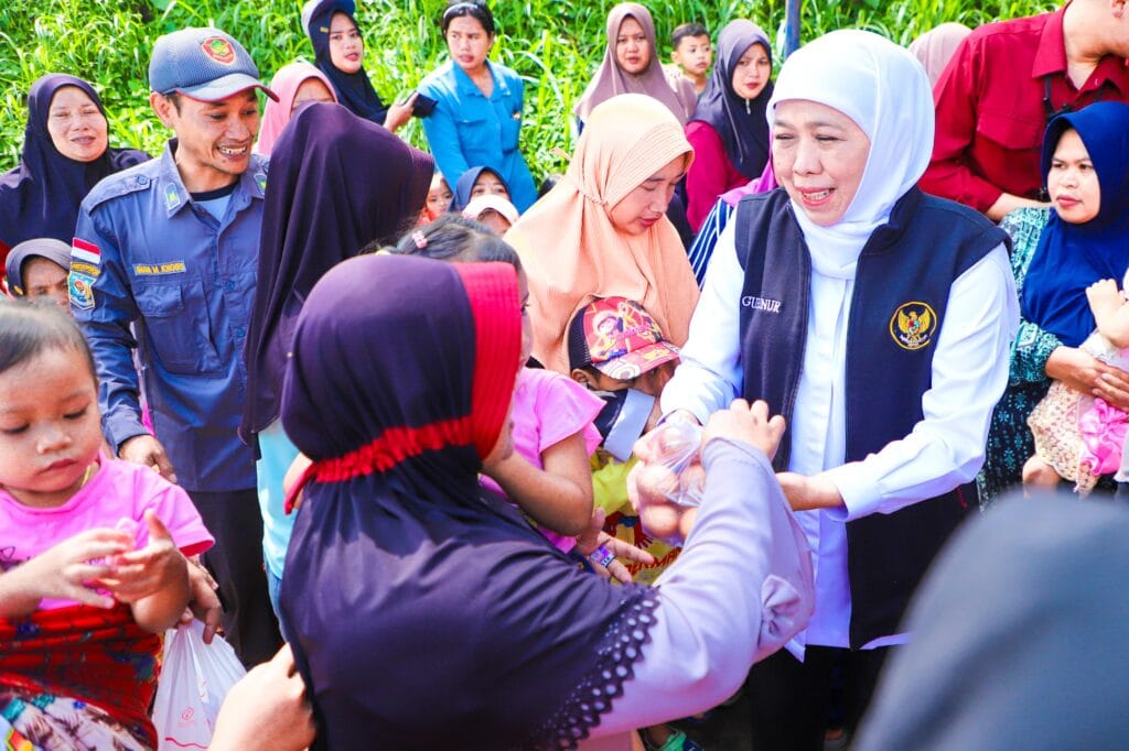 Saat meninjau pasar murah, Gubernur Khofifah menyempatkan diri menyapa masyarakat dan membagikan telur kepada ibu hamil serta balita, serta memberikan beras kepada lansia. Menurut Khofifah, telur yang dibagikan kepada ibu hamil dan balita agar asupan gizi ibu hamil dan balita tercukupi sehingga bebas stunting. Khofifah menyebut, hasil evaluasi Kemenkes, Jatim stunting nomor 2 paling bawah setelah Bali. “Insya Allah progam stunting di Jatim sukses. Terus bekerja keras hingga stunting nol bagi Jatim,” ungkap Gubernur Jawa Timur.