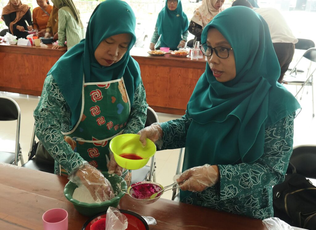 Selama pelaksanaan kegiatan, ibu-ibu PKK terlibat secara aktif dalam seluruh tahapan pembuatan klepon buah naga, mulai dari pengenalan potensi komoditas lokal, pemilihan bahan, teknik pengolahan, hingga proses penyajian. Suasana kegiatan berlangsung interaktif, ditandai dengan keaktifan peserta dalam praktik langsung, diskusi, serta ketertarikan untuk mengembangkan produk tersebut secara mandiri.