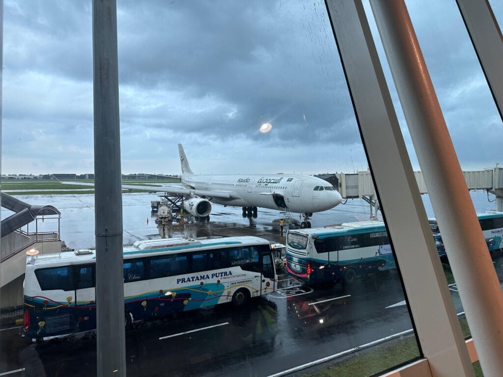 SIDOARJO | brigadepasopati.com – Para jama’ah Haji 1446 H / 2025 Embarkasi Jawa Timur mulai diberangkatkan dari Bandar Udara Internasional Juanda, sejak Jum’at (02/05/2025). Adapun Kelompok Terbang (Kloter) pertama jama’ah Haji resmi berangkat menggunakan pesawat Saudi Arabia Airlines dengan nomor penerbangan SV 5165 pada pukul 07.40 WIB menuju Bandara Internasional Pangeran Mohammad Bin Abdul Aziz, Madinah.