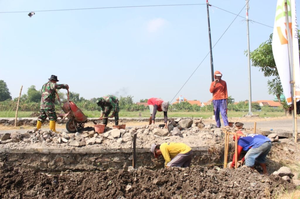 SIDOARJO | brigadepasopati.com — Personel Satuan Tugas TNI Manunggal Membangun Desa (TMMD) ke-126 Kodim 0816/Sidoarjo kembali menunjukkan semangat juang dan ketangkasan tinggi dalam membangun plengsengan saluran irigasi yang berlokasi di Desa Kedondong, Kecamatan Tulangan, Kabupaten Sidoarjo, pada Jum’at (17/10/2025).