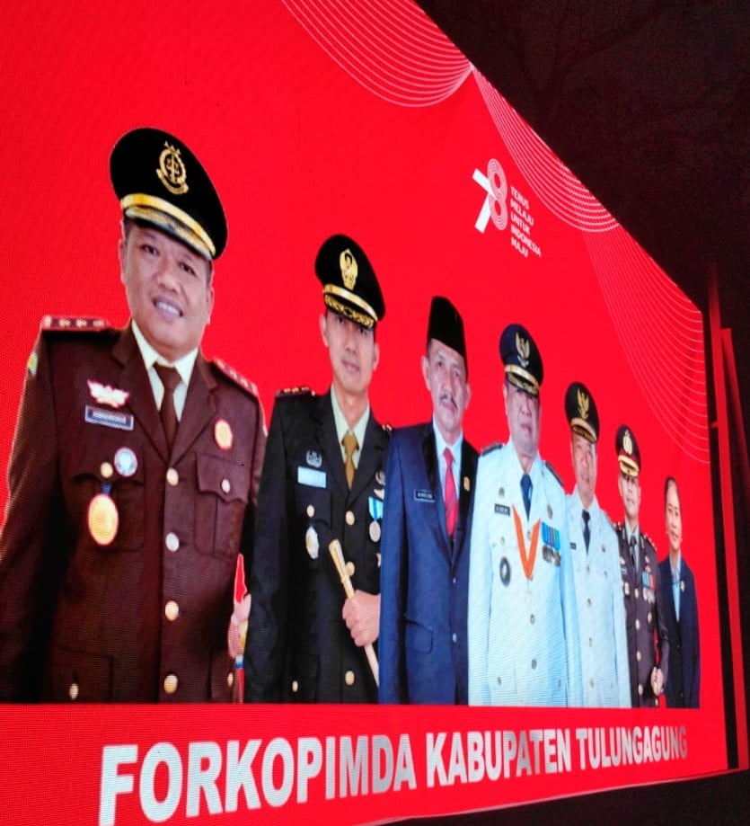 Tampak mengikuti upacara Wakil Bupati Gatut Sunu WIbowo, Dandim 0807 Letkol CZI Nooris Agus Rinanto,SIP, Kajari Ahmad Muklis SH MH, Kepala Pengadilan Negeri Tulungagung Crila Nur Endah SH MH, Kapolres Tulungagung Teuku Arsya Khadafi SH SIK MH, Kalapas, seluruh kepala OPD, dan seluruh pejabat di lingkungan Pemerintah Kabupaten Tulungagung