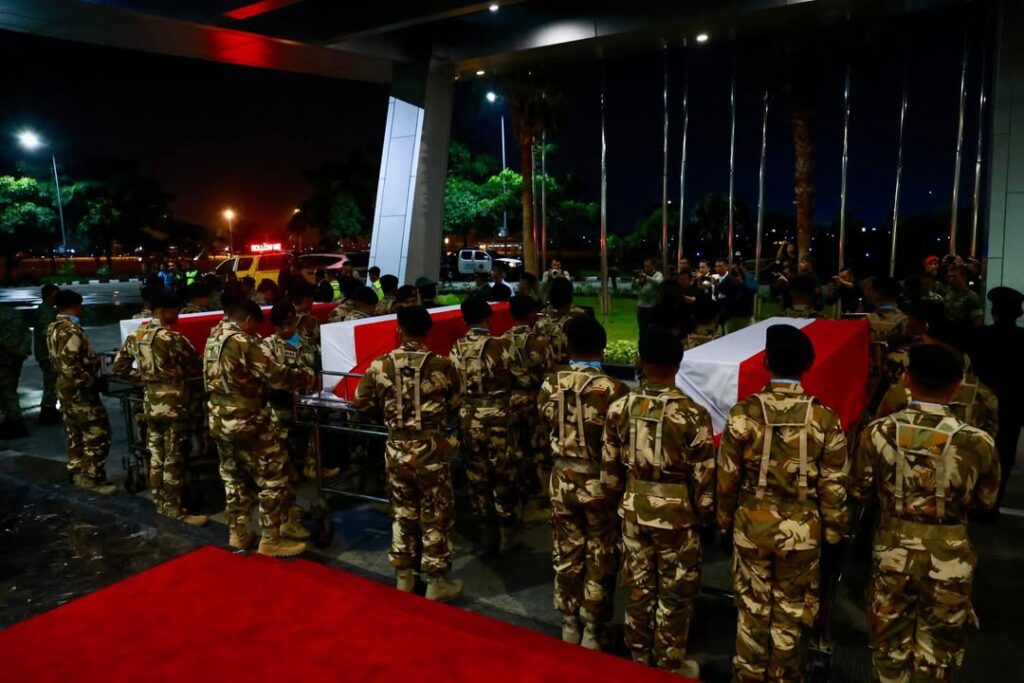 Ketiga jenazah personel pasukan perdamaian Indonesia yang gugur tiba di Bandar Udara Internasional Soekarno-Hatta pada pukul 17.20 WIB. Sebelumnya, pada Kamis (2/4/2026), telah dilaksanakan upacara pelepasan dan penghormatan kepada ketiga personel tersebut di Bandara Internasional Rafic Hariri di Beirut, Lebanon yang dipimpin langsung oleh Force Commander UNIFIL.