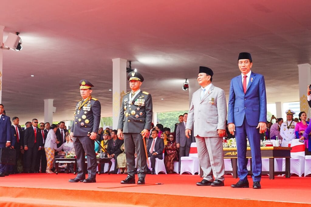 Hadir pada upacara dan rangkaian puncak peringatan HUT Ke-79 TNI di Lapangan Silang Monas, Presiden Jokowi hadir sebagai Inspektur Upacara bersama Ibu Negara Iriana Joko Widodo, kemudian Wakil Presiden RI Ma’ruf Amin, Menteri Pertahanan/Presiden Terpilih Prabowo Subianto dan Wakil Presiden Terpilih Gibran Rakabuming Raka.