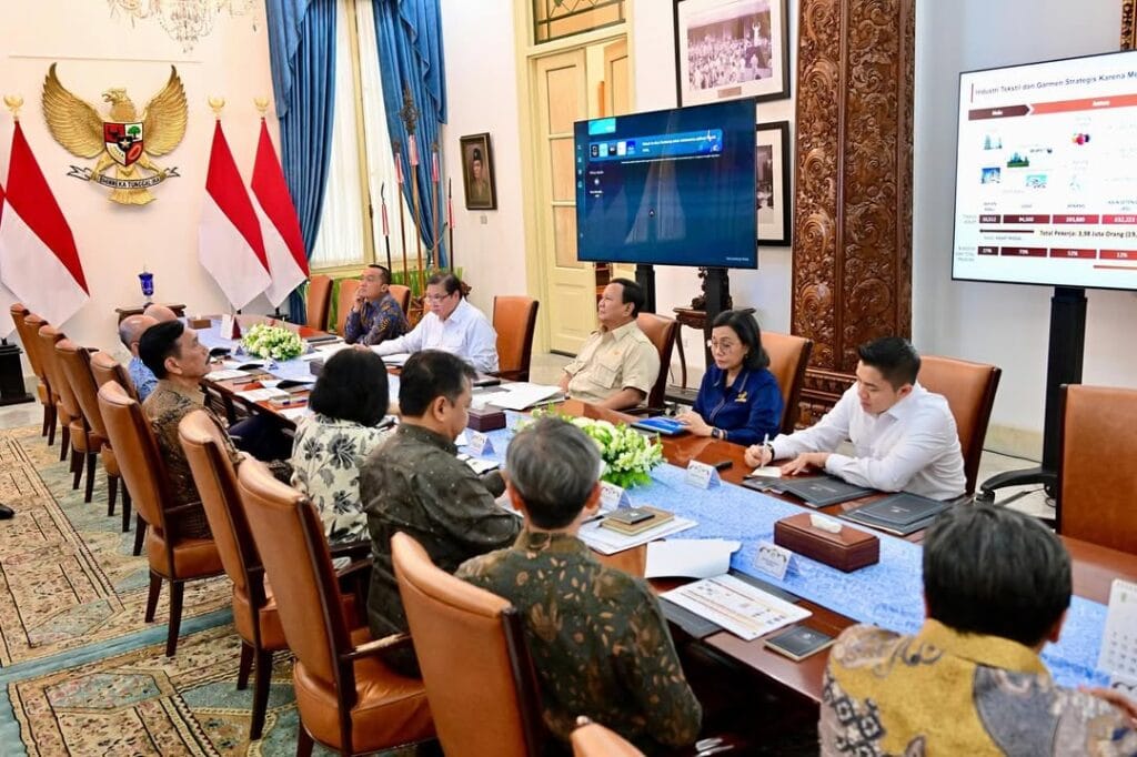 JAKARTA | brigadepasopati.com – Presiden Prabowo Subianto memimpin rapat terbatas bersama anggota Dewan Ekonomi Nasional, Menko Perekonomian, dan Menteri Keuangan, untuk mendengarkan laporan Ketua DEN terkait pelaksanaan Makan Bergizi Gratis, pengaplikasian digitalisasi Pemerintah, dan juga membahas terkait industri tekstil dalam negeri di Istana Merdeka, pada Rabu (19/03/2025).