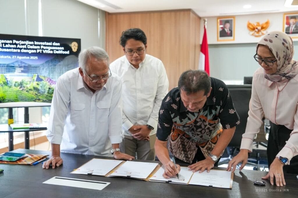 JAKARTA | brigadepasopati.com – Otorita Ibu Kota Nusantara (IKN) dan PT Vitka Delifood resmi menandatangani Perjanjian Kerja Sama (PKS) terkait pengembangan lahan di Kawasan Inti Pusat Pemerintahan (KIPP) Ibu Kota Nusantara. Penandatanganan dilaksanakan di Menara Mandiri, Jakarta, dengan menghadirkan Kepala OIKN, Basuki Hadimuljono, dan Komisaris Utama PT Vitka Delifood, Asman Abnur, pada Rabu (27/8/2025).
