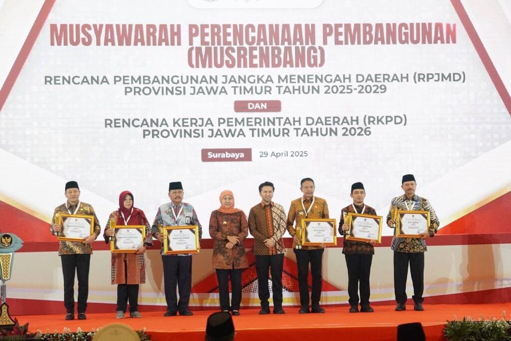 SIDOARJO | brigadepasopati.com – Kabupaten Sidoarjo kembali menorehkan prestasi membanggakan dalam bidang pembangunan daerah. Dalam gelaran Musyawarah Perencanaan Pembangunan (Musrenbang) Provinsi Jawa Timur yang berlangsung di Hotel Shangri-La Surabaya, pada Selasa (29/4/2025), Bupati Sidoarjo H. Subandi, S.H., M.Kn. menerima langsung piagam penghargaan sebagai Terbaik I Kategori Kabupaten dalam ajang Penghargaan Pembangunan Daerah (PPD) Tahun 2025 dari Gubernur Jawa Timur, Hj. Khofifah Indar Parawansa.